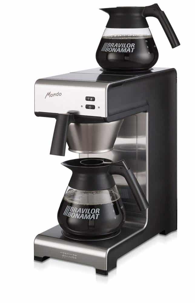 Profesionalni aparat sa 2 staklena bokala i grejnim pločama za održavanje toplote.